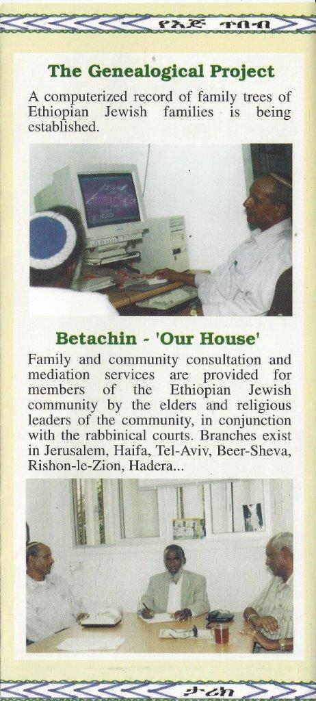 The genealogical ProjectA computerized record of family trees of Ethiopian jewish families is being established.