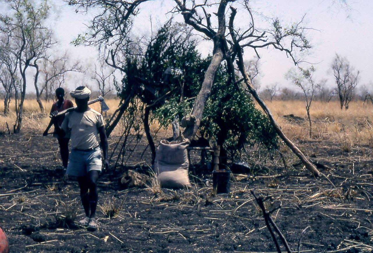 29. AGRICULTURE: SLASH AND BURN Yona Bogale , with armed escorts examines the burned fields and houses on the Ethiopian-Sudanese border |