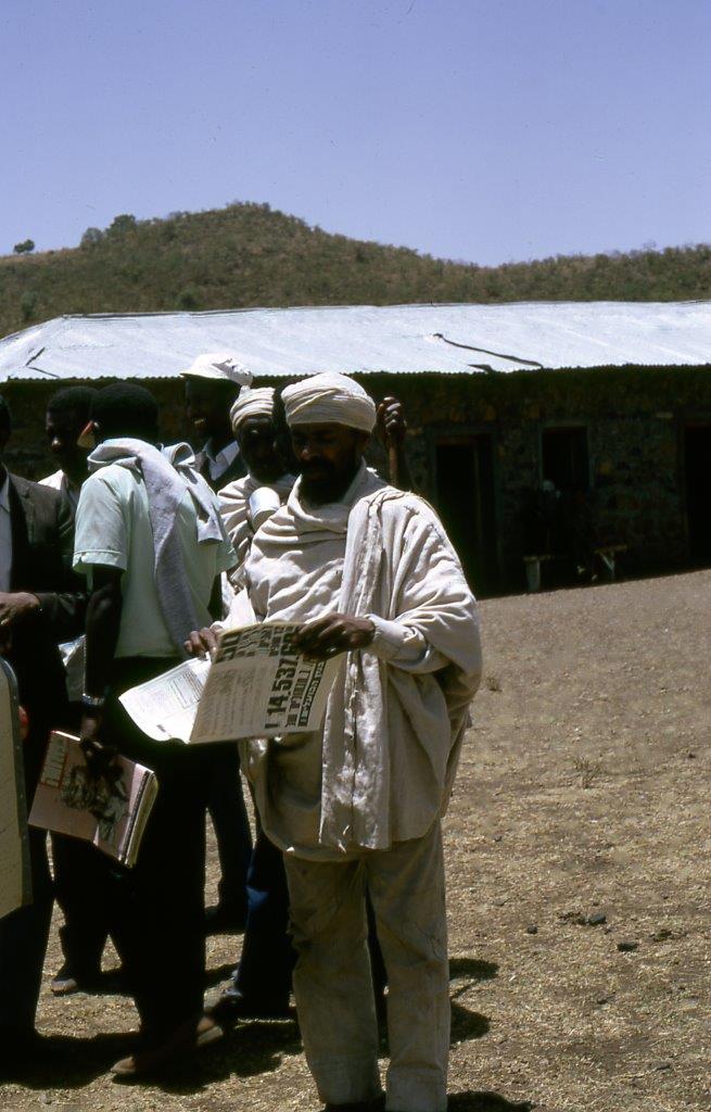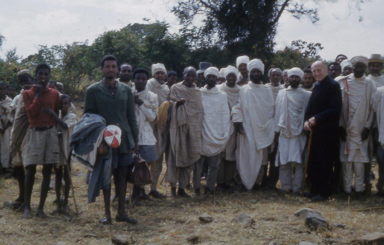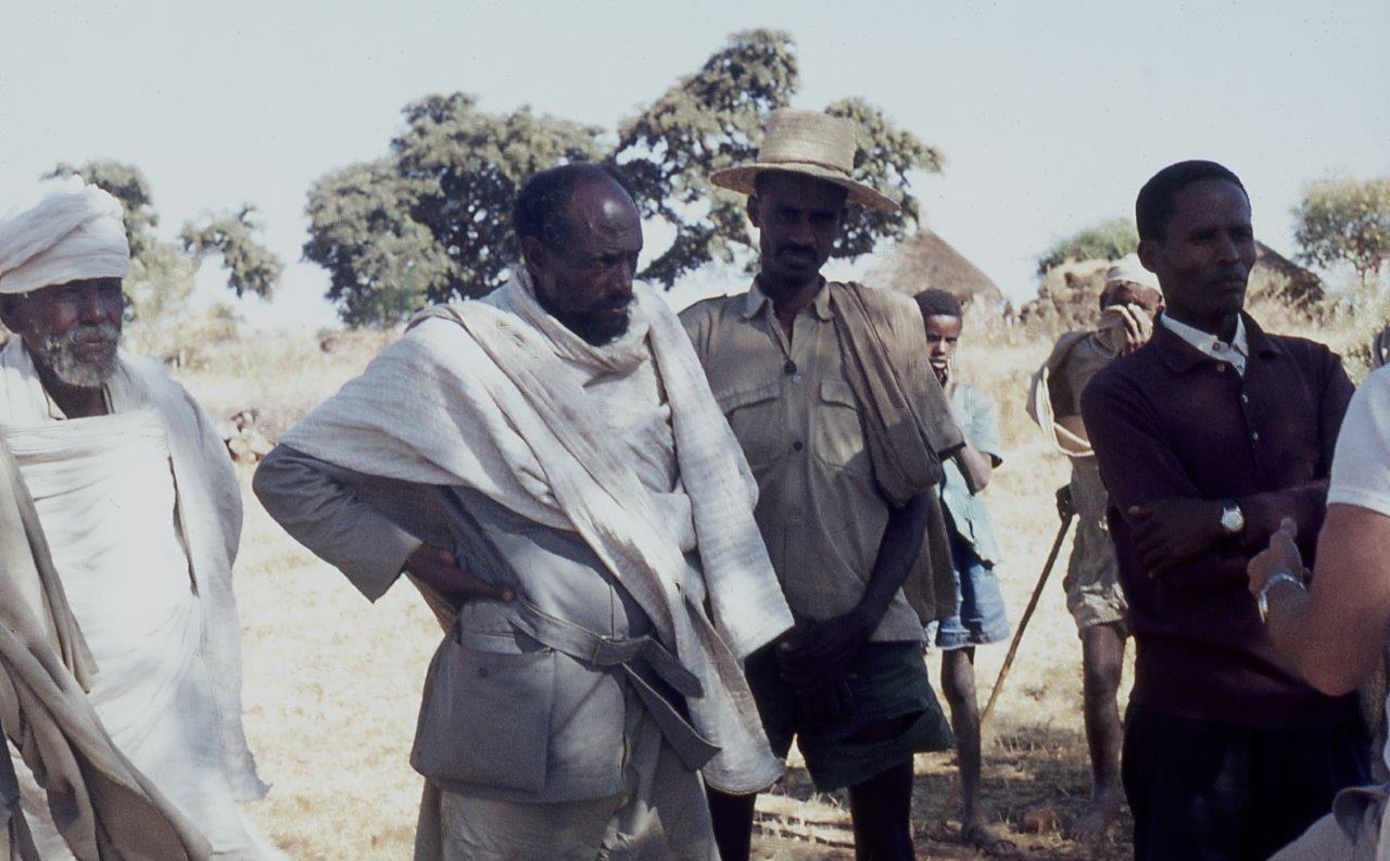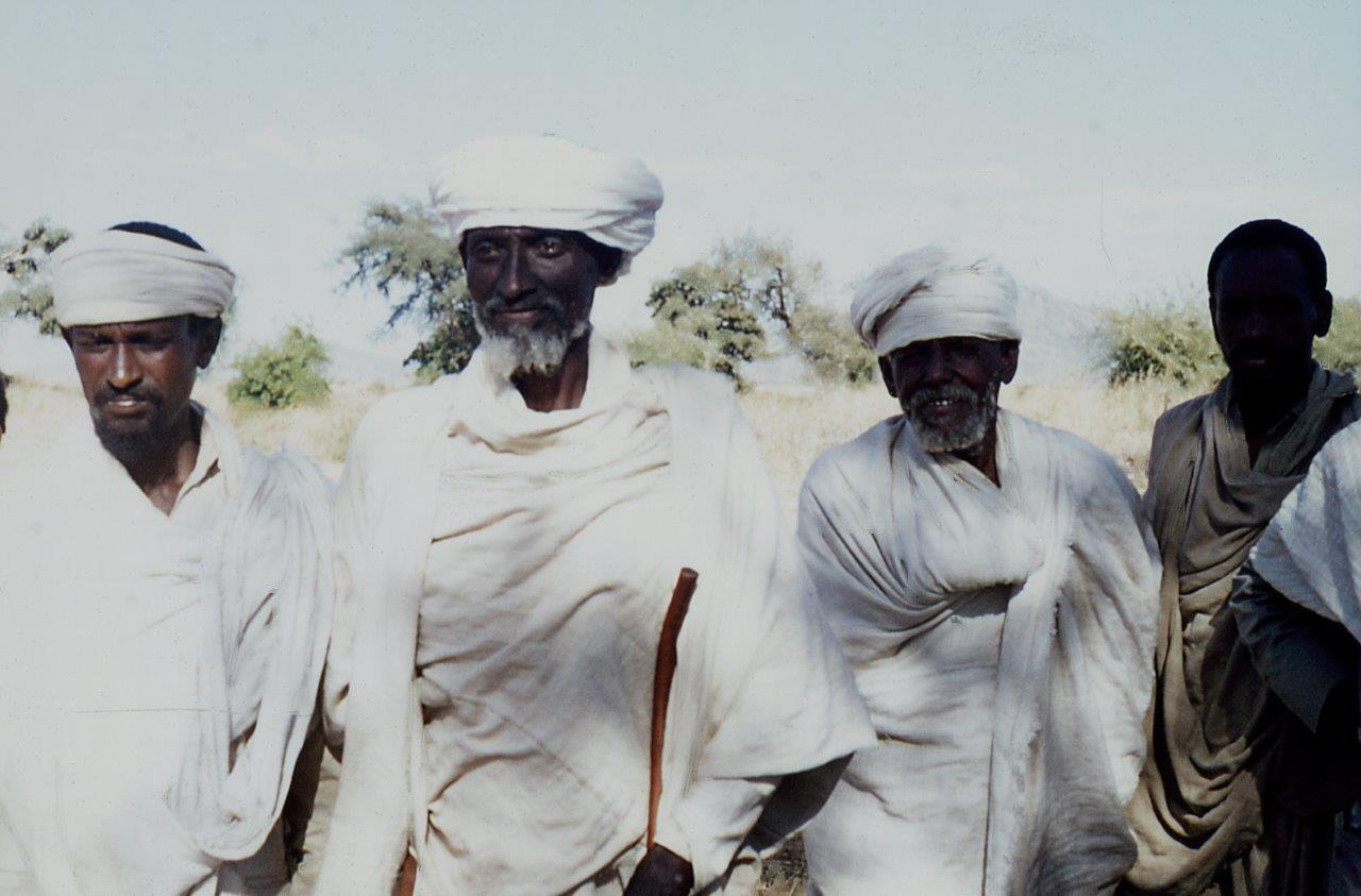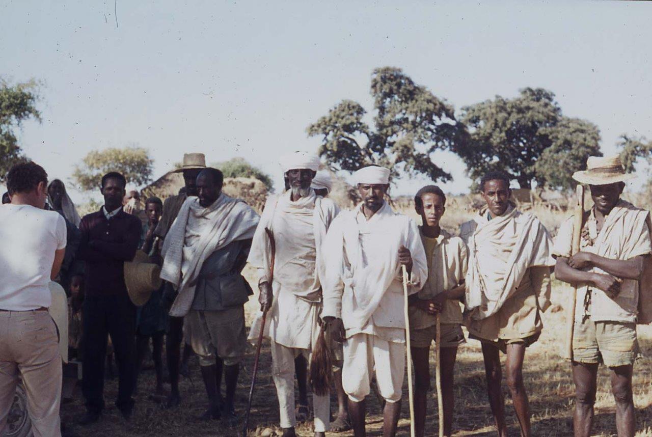 | 110. PEOPLE Norman Bentwich with a group of Beta Israel leaders at Tedda in 1961: Kahen Rafael Hadani is standing on Bentwich's left. |